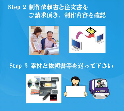 | 2)ご利用方法の基本的な作業の流れ | 詳細は、『納品迄の流れ』をご覧下さい。 作業の料金は前金制で、ご入金確認後に作業が始まります。 |