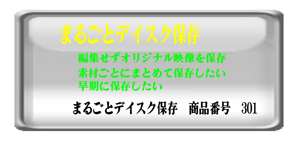 | 7)ビデオ映像の画質と、デイスクや納品後の返品について | 色々な素材が混在しますと、画質や再生時に映像が不安定になり、映像が乱れます。 1枚のデイスクには、同じ方式(例 標準画質でVHSの映像のみ・・)の映像をまとめられることをお勧め致します。 映像には、縦横比の規定がありますので、同じ規定の素材をまとめられることをお勧め致します。 編集作業が終わりましたら、ご希望のデイスク(DVDか、Blu-ray)へ書き込みます。 (ご注意)素材が標準画質ですと、Blu-ray に保存しましても映像は標準画質のままです。 また、素材の容量(ビデオ映像の量)が多く、デイスク1枚に収まらない場合と、 少量ですと、空白(未映像)の部分が生じる場合がございます。作業が完了致しますと、変更や修正、追記は出来ませんので、ご注意下さい。 (ご不明な点はメールでお問い合わせ下さい) これらの内容は日本国内のビデオ再生の規定ですので、不良ではありません。 お客様の再生機器の環境でも異なりますので、これらの事例で返品や、再編集の作業は行えませんので、事前にご了承下さい。 作業が完了し、お届け後に明らかな弊社の作業場上の不具合がございましたら、ご連絡下さい。適切なご対応をさせて頂きます。それ以外のご要望にはご対応出来ません。 |